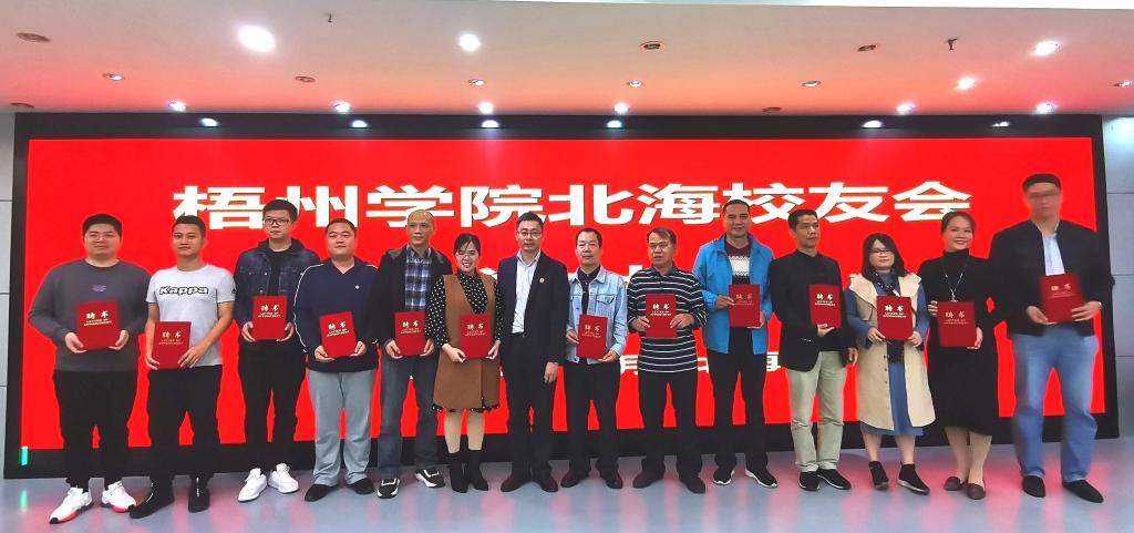 会上,副校长宾月景宣读了 《梧州学院校友会关于成立梧州学院北海校友会的批复》,梧州学院北海校友会筹委会代表陈光志作了《梧州学院北海友会筹备情况工作报告》,审议通过了《梧州学院北海校友会章程(草案)》,选举廖克辉等19名北海校友为梧州学院北海校友会第一届理事会理事。随后召开的梧州学院北海校友会第一届理事会第一次会议,选举廖克辉为名誉会长,陈日明为会长,陈秋旭为常务副会长。