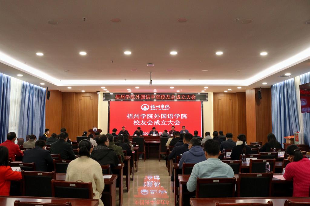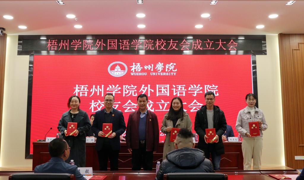 今年12月25日下午,梧州学院外国语学院校友会成立大会在我校明科楼学术报告厅召开,我校第一个二级学院校友会外国语学院校友会正式成立。学校党委常委、副校长宾月景,梧州学院校友会秘书长李远林,学校党委(校长)办公室公室副主任庄雨,外国语学院院长刘卫东、副院长梁毅出席大会。外国语学院校友和师生代表80多人参加大会。大会由外国语学院党委书记朱宇乾主持。
