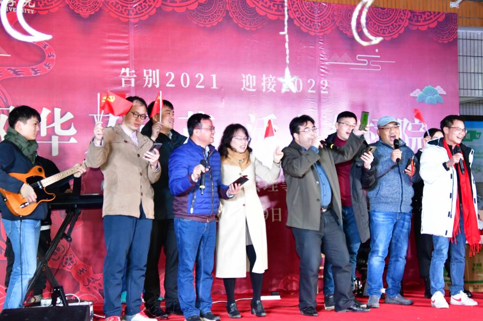 随后,校友代表、学校及有关部门领导先后登台表演了独唱、合唱、表演唱、时装秀等节目,韦仕珍书记、杨奔校长共同演唱的歌曲《选择》将晚会推向了高潮。