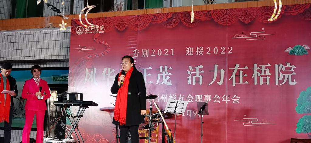 梧州学院梧州校友会2022年迎新春晚会近日在校友们的期盼中缓缓而来。学校党委书记韦仕珍,校长杨奔,副校长宾月景,校长助理、党委(校长)、校友工作办公室主任覃雄彪,外国语学院院长刘卫东,继续教育学院院长梁复明,学校校友会秘书长李远林,党委(校长)办公室副主任庄雨,党委统战部副部长、学校校友会副秘书长文玉兰及校友工作办公室有关人员应邀出席晚会,与近50名梧州校友欢聚一堂,辞旧迎新,共话美好未来。