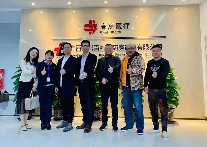 随后,张凌志一行来到韦超华校友广西梧州市百姓大药房连锁公司进行走访,听取有关情况介绍,参观了公司的库房,对公司近年来取得的业绩表示祝贺。