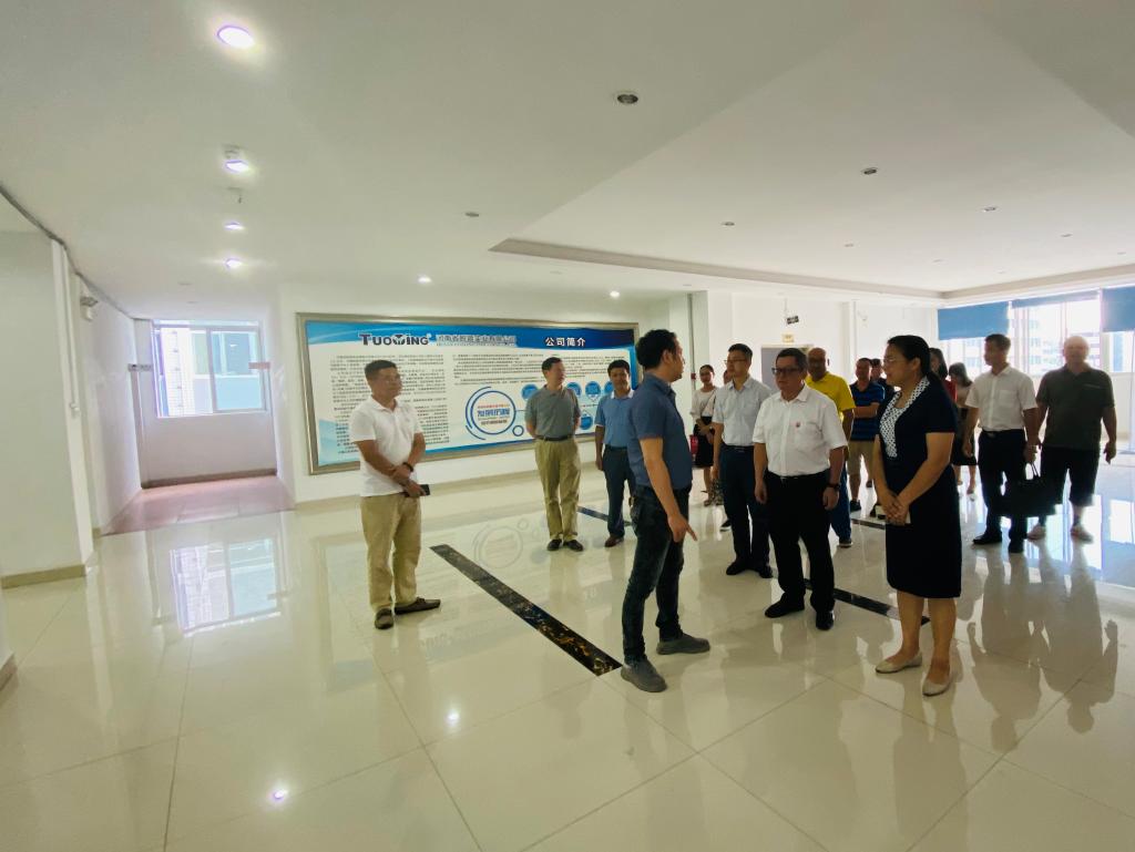 韦仕珍、杨奔一行在我校梧州校友会会长、广西高民科技发展有限公司执行董事张凌志陪同下,参观了公司研发场所和产品展示厅,听取有关情况介绍。当了解到该公司为集互联网、物联网、共享经济为一体的高科技企业,涉足电子竞技产业,智慧教育,智慧党建,智慧云端办公、家用电脑产品,光质子量子技术在显示器、电视机上的应用产品研发、生产、销售, 产品出口以欧美、澳洲、东南亚国家为主,发展前景良好,人才需求迫切时,韦仕珍、杨奔等领导感到由衷的高兴。
