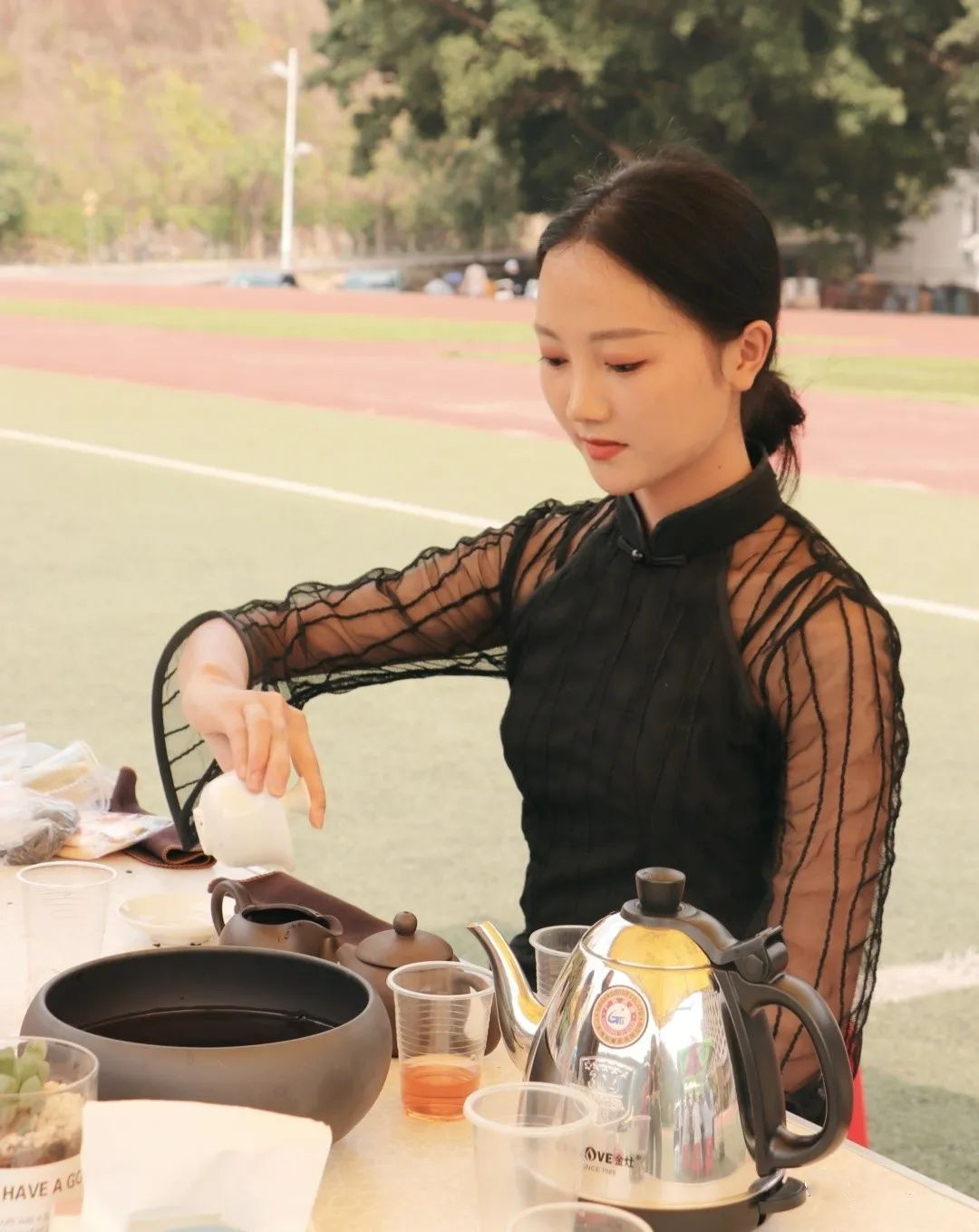 “本次茶会活动,在与老师近距离的交谈过程中,我对茶学知识有了更深入的了解,洗具、投茶、洗茶、泡茶、分茶、敬茶一整套完整的冲泡过程下来,更是对茶艺技术的考量。”2021级茶学班谭花桂分享了她的感受。