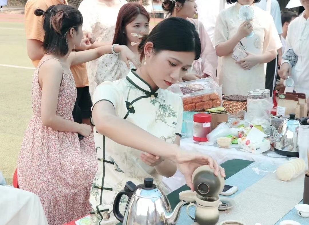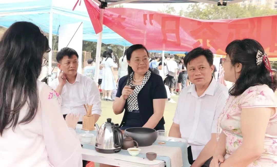 为庆祝2022年国际茶日,弘扬茶文化,促进六堡茶产业发展,增强学生的专业素养,根据梧州市《2022国际茶日系列庆祝活动工作方案》的要求,5月21日下午,学校在田径场举办“国际茶日”茶会活动。学校党委书记韦仕珍出席活动并讲话。学院领导班子成员、师生代表约300人参加了本次活动。本次活动由食品与制药工程学院主办,是市2022国际茶日系列庆祝活动之一,活动主题是:“5·21国际茶日,邀你共饮六堡茶”。