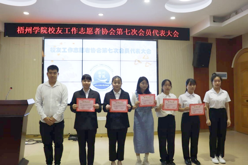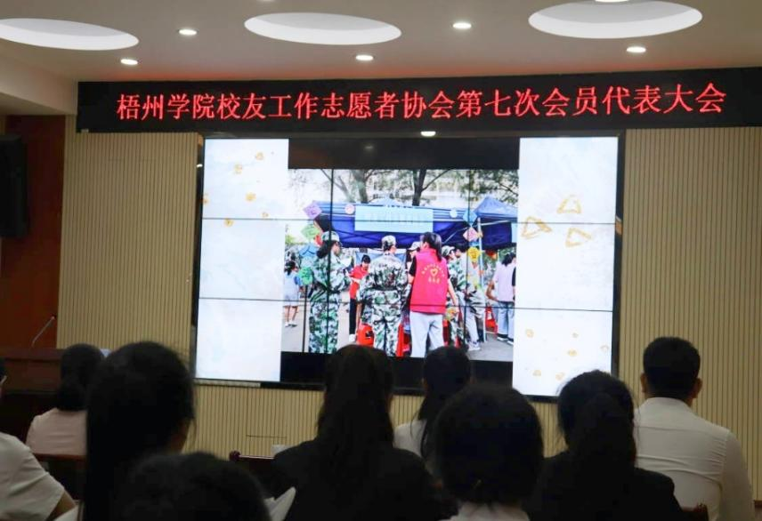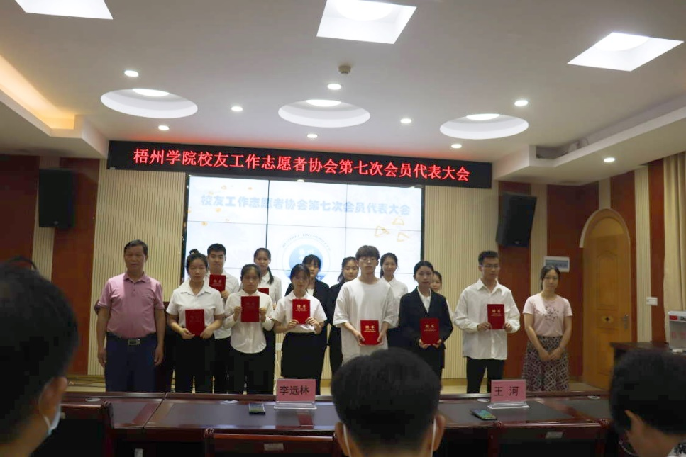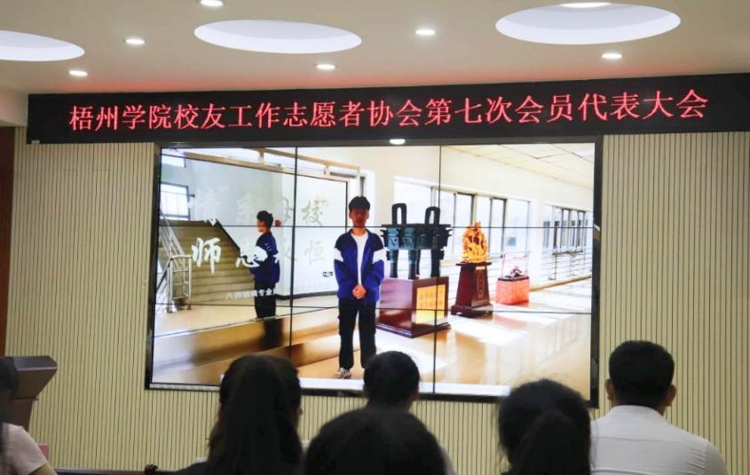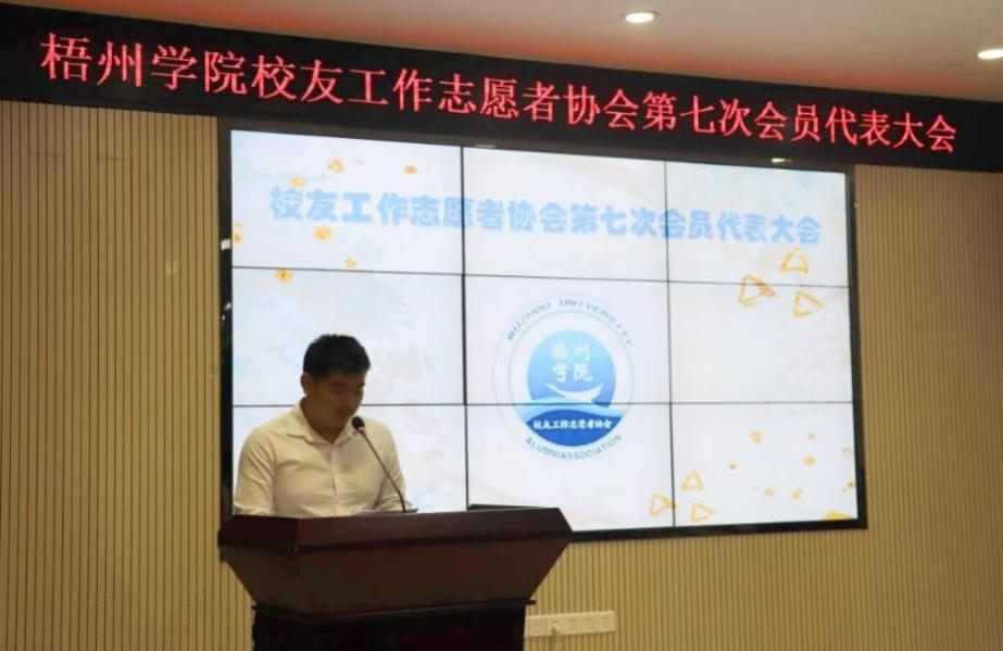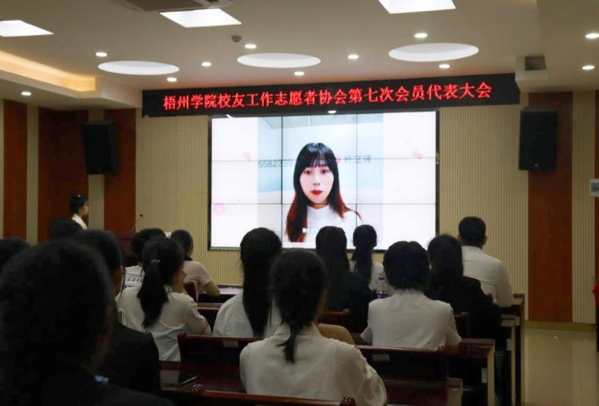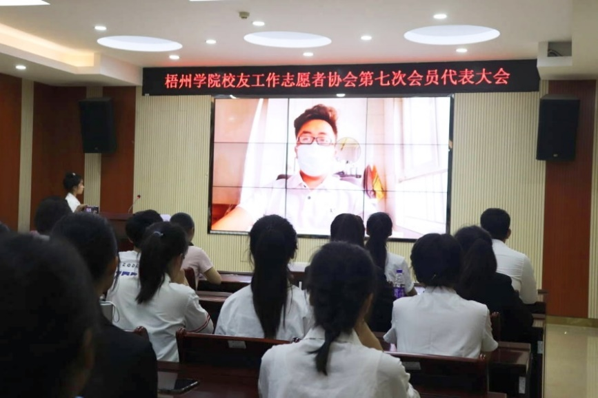 2022年5月22日晚,梧州学院校友工作志愿者协会第七次会员代表大在明理楼七楼视频会议室召开。协会第六届理事会机构成员,第七届机构候选干部和协会会员代表46人出席会议。梧州学院校友会秘书长李远林,协会指导老师、学校校友工作办公室科长王河,学校社团联合会及社团代表应邀出席本次会议,会议由协会第六届理事会副会长陆君悦主持。